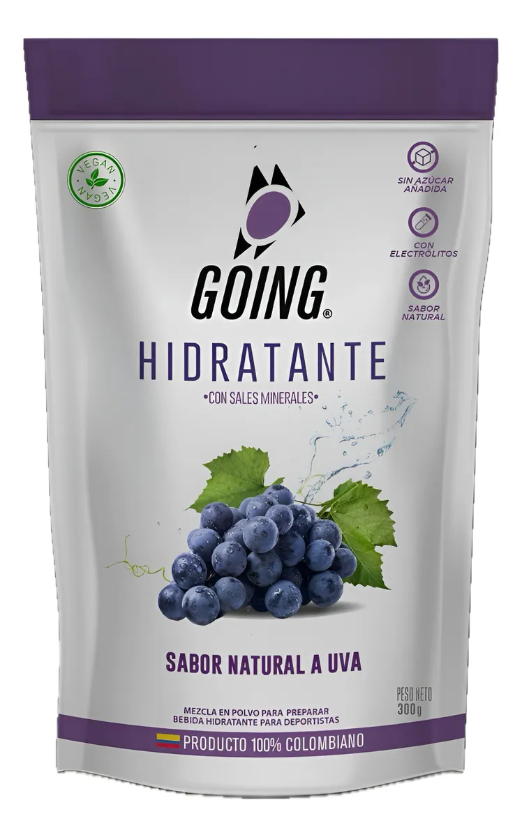 Hidratante con Electrolitos Going formulado para reponer sales minerales, energía y vitalidad durante tus entrenamientos y competencias de running. Sabor natural a Uva 🍇. Este isotónico sin azúcar añadida te mantiene fresco, enfocado y resistente hasta el último kilómetro. Ideal para runners de fondo y velocidad, que buscan una hidratación real.